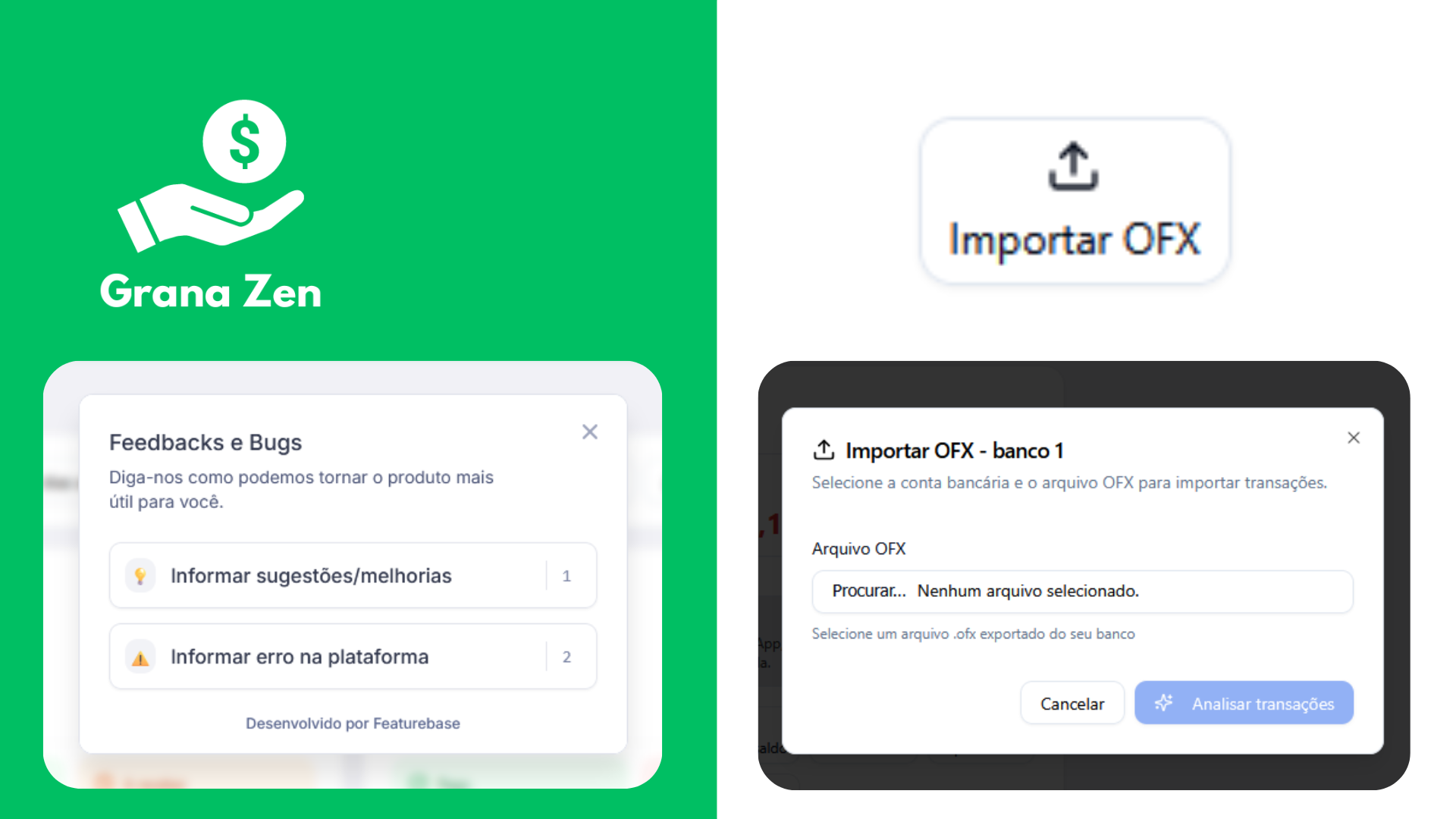 Agora o GranaZen também permite importar arquivos OFX em conta bancária, facilitando a entrada de movimentações financeiras no sistema.